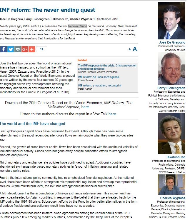 Decano De Gregorio participó en elaboración Informe de Ginebra sobre la economía y FMI